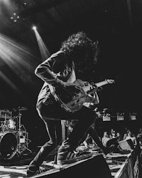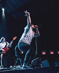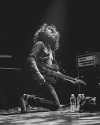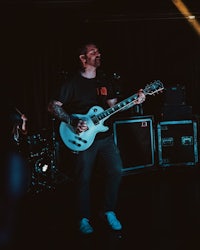 While it’s hard to miss Wells’ towering stature from the crowd, it’s harder to miss Eidola’s lead guitarist, Sergio Medina, whose high-energy stage presence is unparalleled in the progressive metal/swancore scene. Throughout Eidola’s set, Medina can often be seen leaping and darting across the stage while ripping guitar riffs, in a manner both erratic and captivating to showgoers.